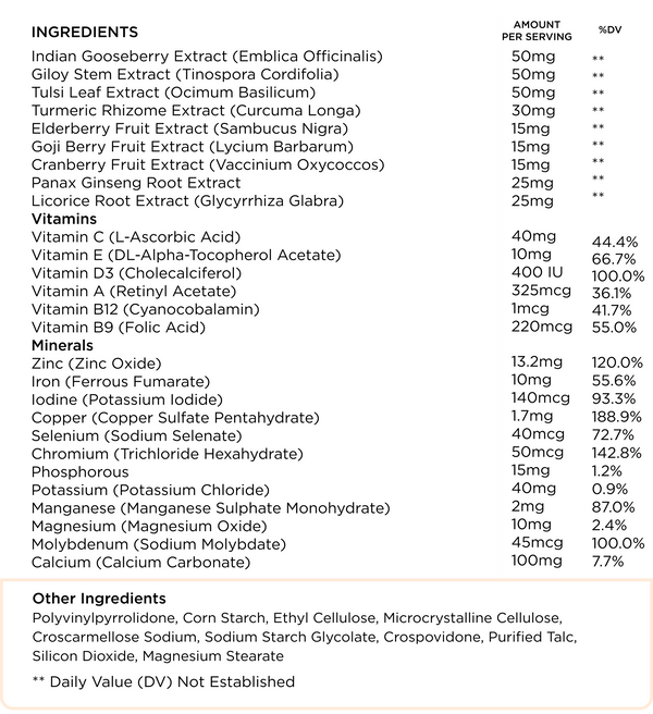 EACH DAILY SERVING OF NUTRIFY IMMUNITY BOOSTER CONTAINS