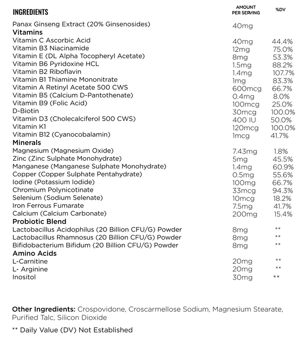 EACH DAILY SERVING OF NUTRIFY MV MEN CONTAINS
